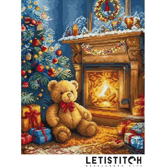 【Letistitchレッティステッチ社】L9920・Christmas is comming・テディベアと暖炉・クロスステッチキット・16CT・22×27・全面刺し