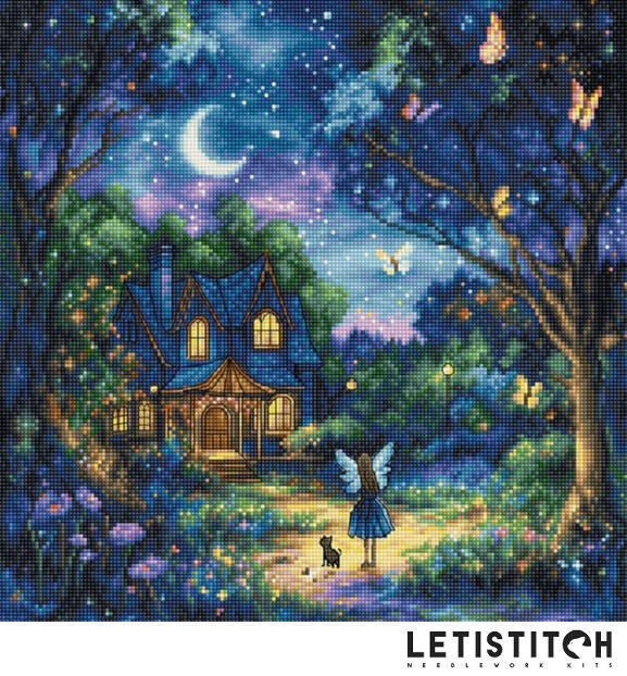 【Letistitchレッティステッチ社】L9942・Lunas Garden・夜と妖精・クロスステッチキット・16CT・27×27・全面刺し