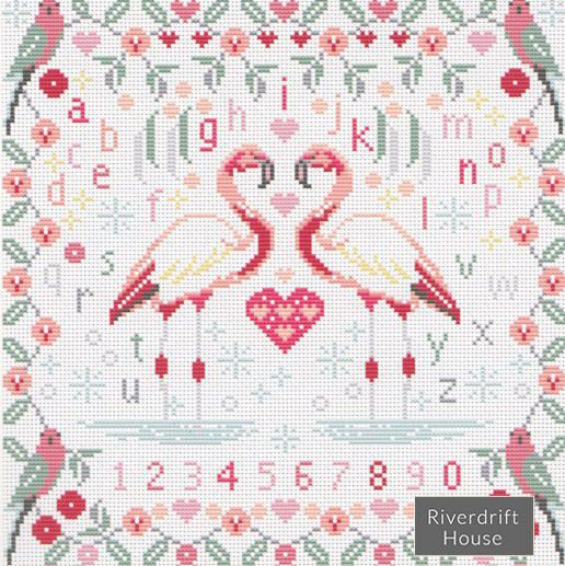 Riverdrift Houseリバードリフトハウス社・RR394・ハートフラミンゴFlamingo・クロスステッチキット・14CT・25×25・中級者向