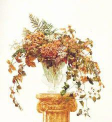 秋をイメージした茶色の草花で構成されたシックなデザインです。アイビーが構成する流れる曲線が印象的です。透けた花瓶の表現も見事。色とびが多いですが、上級者のかたにぜひ製作して頂きたい作品です。(Copyright Thea Gouverneur)