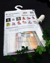 糸は色別に仕分けされており、簡単な日本語解説書付・刺繍布・糸・針・白黒図案同封。