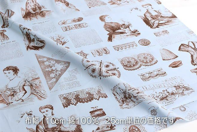 【アンティーク柄・水色】コスモ社・25cm単位で切売り・31098_70