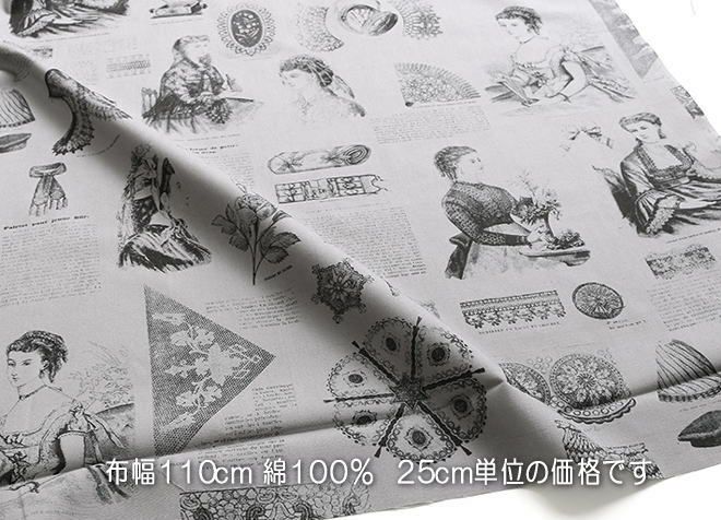 【アンティーク柄・グレー色】コスモ社・25cm単位で切売り・31098_90