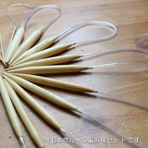 宅配便限定 204【ループ編み棒16本セット2.5mm~12mm】収納に便利な木綿布ケース付