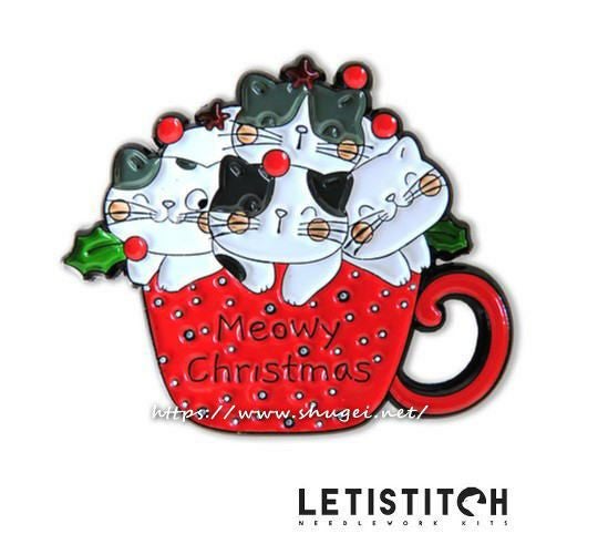 【Letistitch社】14341・MeowyXmas・猫とカップ・チャートホルダー+