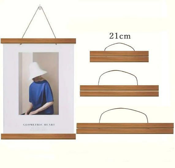 【マグネットウッドフレーム・茶】約横21×縦2×幅1.2cm・紐付・挟んで飾るだけ簡単額装・magnet-walnut-21