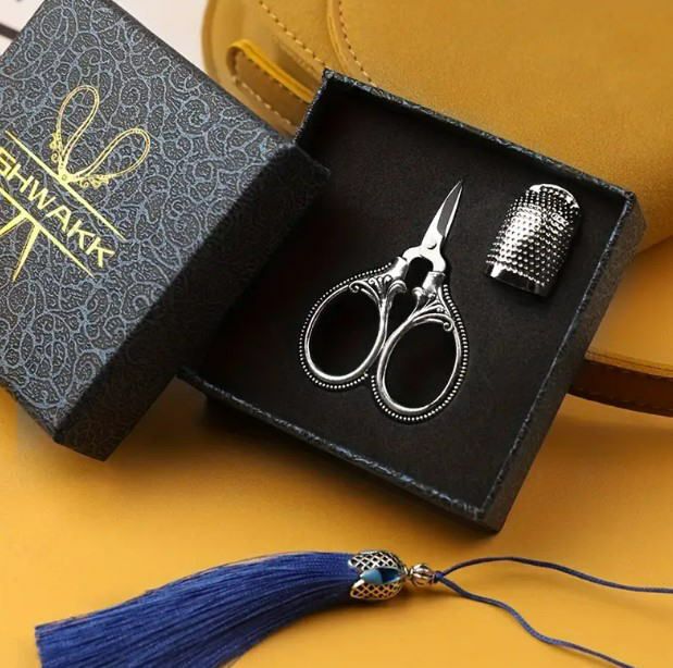 箱入【ヴィンテージソーイングセットS・鋏+指ぬき+タッセル】鋏6×4.2cm・手芸全般・裏糸の処理などにお勧め・sewingset_s