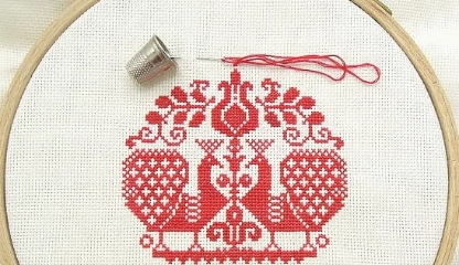 無地の穴の開いた刺しゅう用の布に、図案(チャート)の記号を見ながら刺す技法。 正式にはカウンテッド(数える)クロスステッチですが、一般的にはこの技法が「クロスステッチ」といわれています。布目が細かくなるほど、難しくなりますが仕上がりは繊細で絵画のようです。