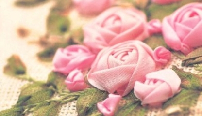 刺しゅう糸のかわりに細めのリボンを使用して刺しゅうする技法。 立体的に仕上り存在感があります。作品の縁取りや一部の飾りとして、クロスステッチキットでも使用されます。リボンの強度(硬いもの~柔らかいもの)・サテン・コットン・オーガンジー・ベッチン等のリボンの素材の違いにより、ステッチの表情が変わります。(ウェディング・ベビー向キットに使用される事が多いです)
