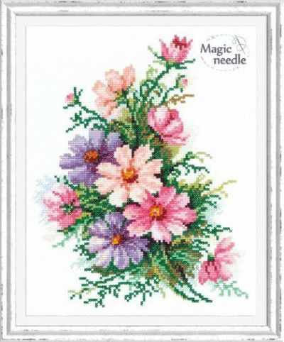 【Magicneedleマジックニードル社】apm40_54・レッドピンクと紫のコスモス・秋桜・クロスステッチキット・14CT・18×24・GAMMA糸使用のレビュー