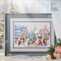 群像タイプの風景デザイン、好きです。こちらのメーカーでは初めて目にしました。中心から木を辿って下に進み男の子、女の子と一人ずつ刺し増やしていき、途中経過を眺めて楽しみながら進めています。14カウントで色数がそこそこなので目に見えて形になっていくのも嬉しいし、割と抑えめの色遣いや目に優しい布色が気持ちを穏やかにしてくれます。チャートと布にグリッド線を5目ごとに引き、軽い吉野檜30センチ枠でコンパクトに作業中です。