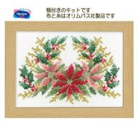 クリスマスリースがわりにと思って刺しました。小さいながら玄関で目をひきます。いかにも「金糸」らしい色味の黄金色が光っています。額にはしっかりとした白い裏板とPET板、紐と支え棒もついていて、ちょっと感動でした。