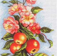 Semateks社のリンゴとプルーンとブドウ、と一緒に秋色ステッチとして制作、額装して飾りました。