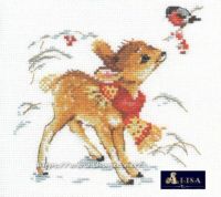 雪の部分にはもともと薄いグレーの糸がセットされていましたが、DMCエトワール糸のBLANCで仕上げました。白地にふんわりきらっとして、デザインの可愛さアップです。