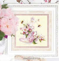 少しずつ刺して、春に完成しました。色もまとまっているからか、合間の時間で少しずつ刺しやすかったです。優しい雰囲気でとてもかわいいです。